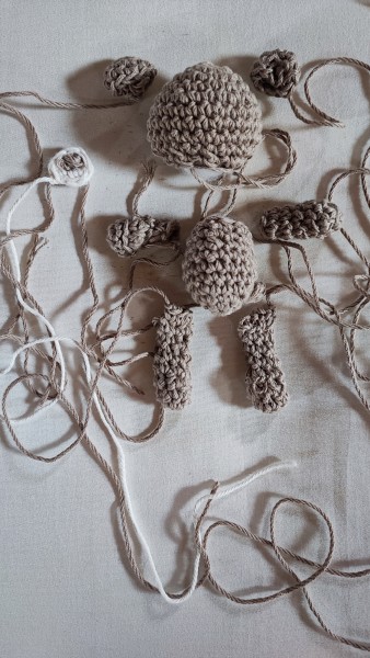2日の夜、頭を編み、残りのパーツは3日の朝活で仕上げました。