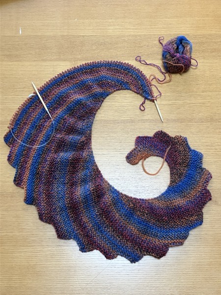 だいぶ大きく成長しました 2玉目の残り1/3くらいまで編みました ギザギザがめんこい!