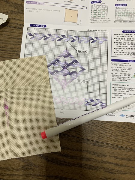 今日キットを購入して、またこぎん刺しをチャレンジしてます。なんとかここまで刺せました!