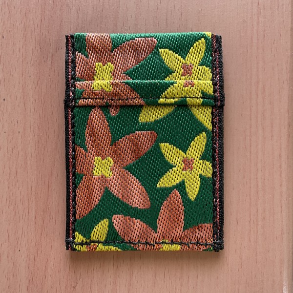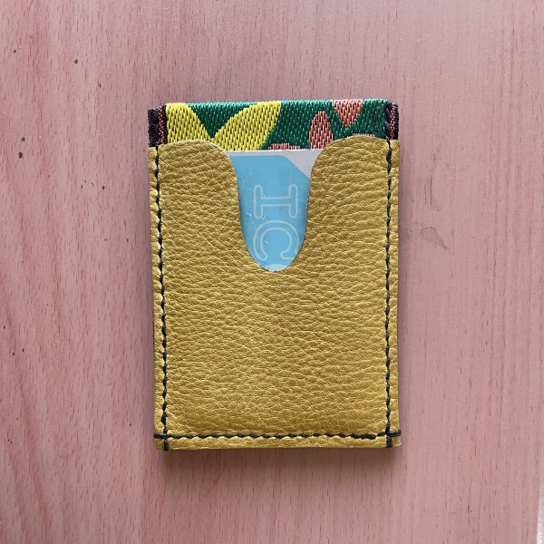 店先でかわいい畳のヘリを見つけたので定期入れを作りました。