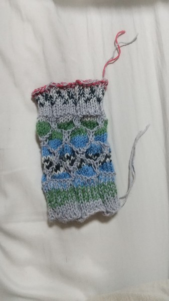 昨日から編み始めたウツボかくし。 片方、編み上がり。 糸始末はまだだけど、もう片方を編むよ~(^.^)