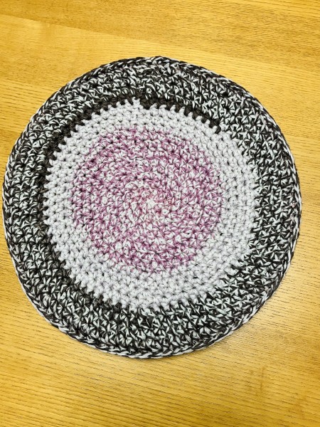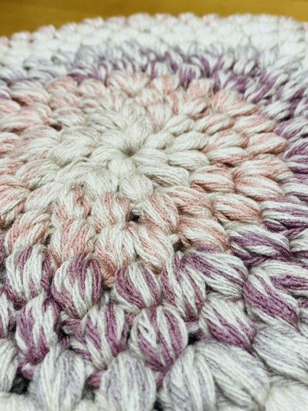 玉編みの円座を作りました 一枚だとちょっと薄い感じがしたので、余った糸で円を編んで繋げました