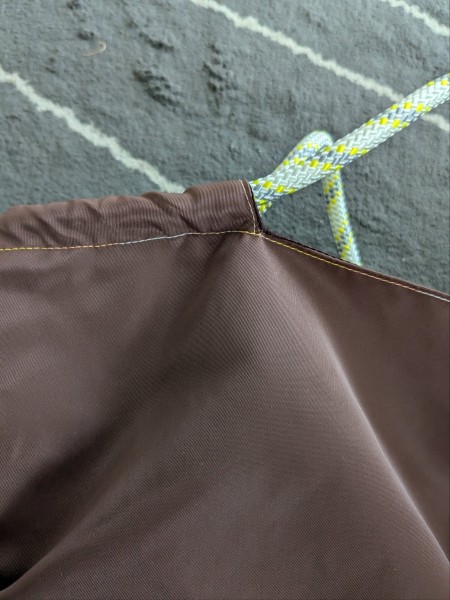 バッグの本体は2枚の生地を底で縫い合わせる形ではなく、1枚で仕立てました。