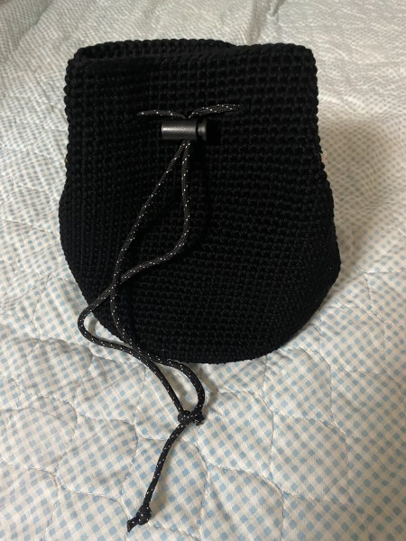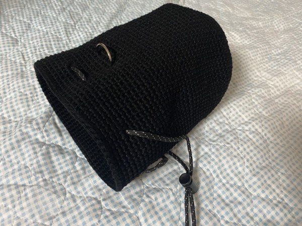 絞る紐を通すところをどうするかは編みながら考えました
