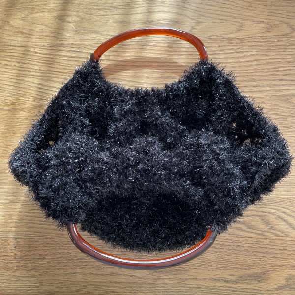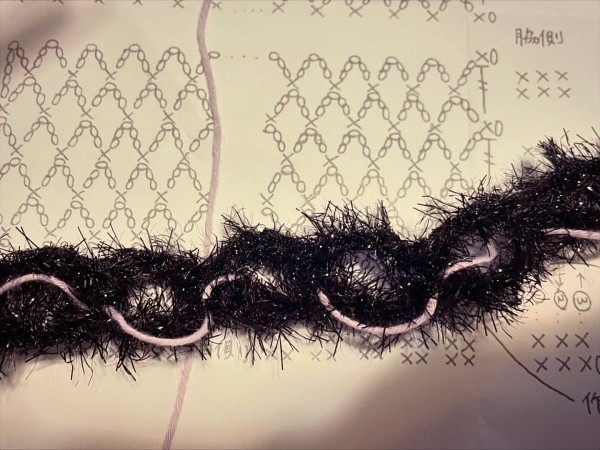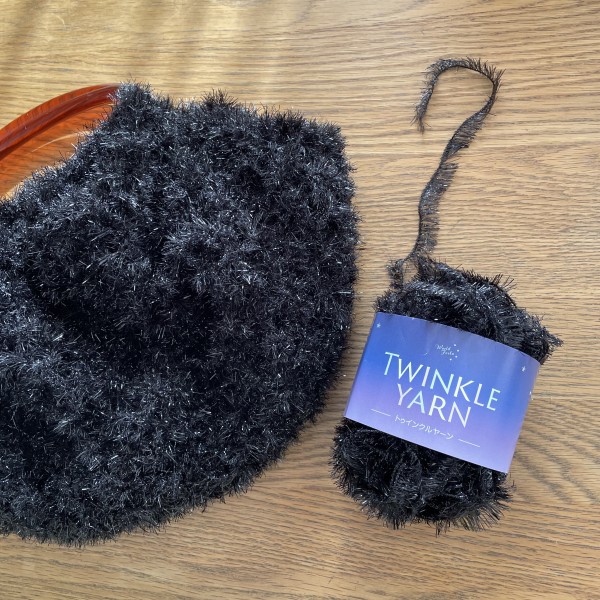フサフサの毛糸って編み目が見ずらく絡まりやすいんですよね。季節問わず使用できそうで、キラキラしていて気分が上がりますね。