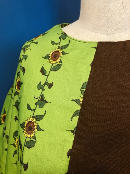中原淳一イラストの生地プラス、ひまわり刺繍。