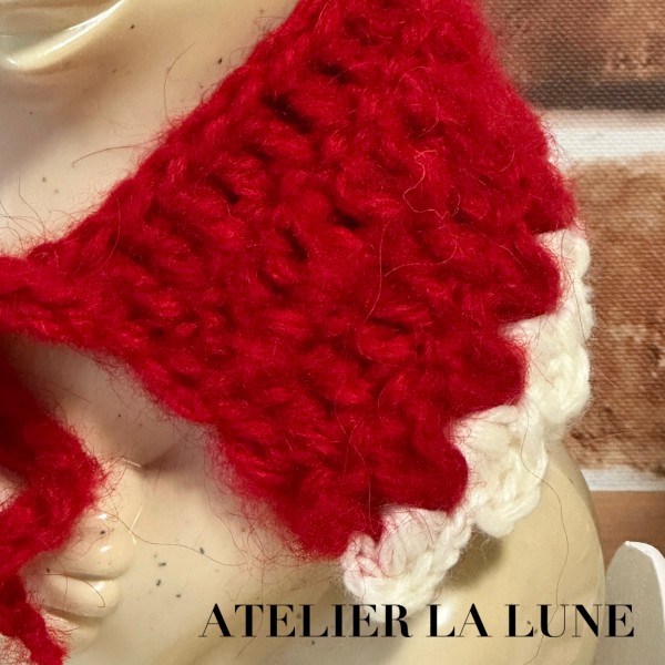 しろくま貯金箱の着せ替え服、サンタ帽とケープを編みました。
