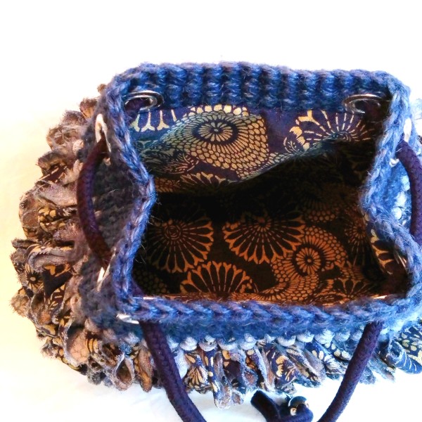 | 【輪織りバッグコンクール:エントリーNo.006】 母からもらった着物はサイズが合わず私には着れませんでした。このまま捨ててしまうのはもったいないと思い、私も母も使えるような輪織りバッグに仕上げました。 ポイントは着物の色に合わせて染めた麻紐と着物の柄が見えるようフリルを付けたところです。また、持ち手は結ぶ位置で長さの調整が出来、結び方で雰囲気が変わるようにしました。2人で使うことを考え、いろいろな持ち方が出来るように工夫しました。 出番が無くなっていた着物をこれからは2人で長く大切に使いたいと思っています。 輪織りバッグコンクールへエントリー中です。投票よろしくお願いします。 |