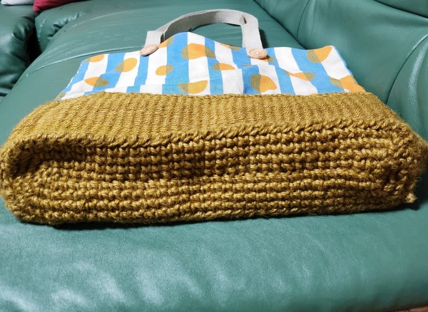 金色の麻ひもは自分で染めました。色合いが気に入ったので、違うデザインのBagを何個か作りました。元気カラーに仕上がったので、野球応援が楽しくなりそうです。