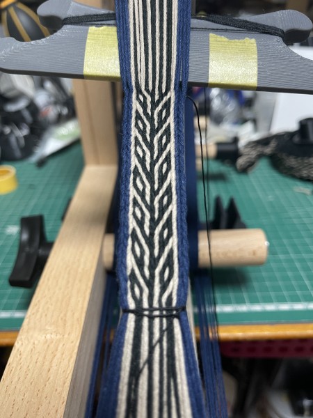 カード織で同じ模様を続けると糸が捻じれていきますが、その捻じれを解消するためにナスカンを使ってみた1作目になります。