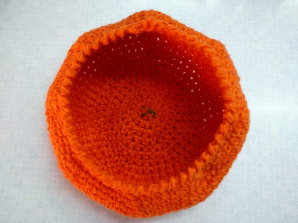 綺麗なオレンジ色の毛糸を見つけたので、ベレー帽を編んで、茎と葉っぱを編んでくっつけて、みかんのベレー帽を編んでみました♪