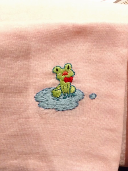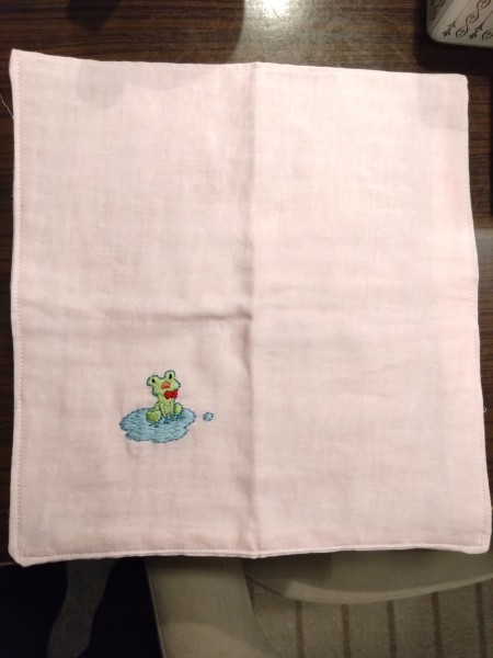 カエルちゃん刺繍ハンカチ。