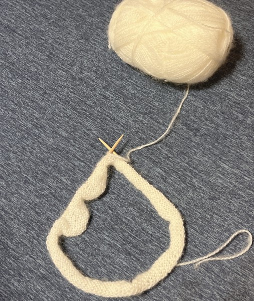 ニュアンスモヘアとポストカード2本取りのシュシュ