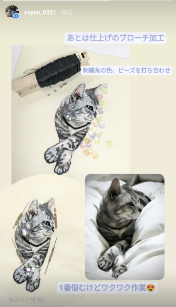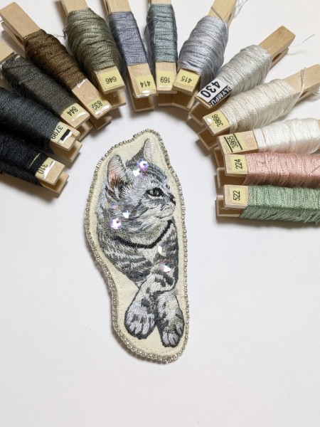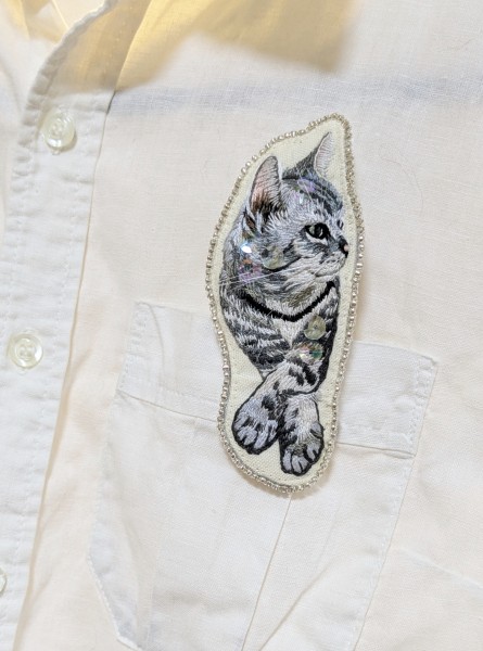 ありがとうございます!今まで顔ブローチのみで作成していましたが、座ったポーズの前脚までを刺繍してポケット用ブローチにしても可愛いなあと新作アイデアが湧きました( *´艸`)