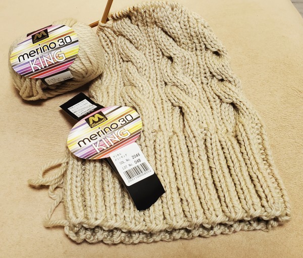 | めちゃくちゃ簡単なアラン帽子 ベスト編んでる途中ですが気分転換で1日で編める帽子で寄り道中 |