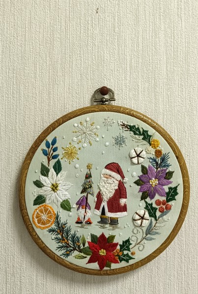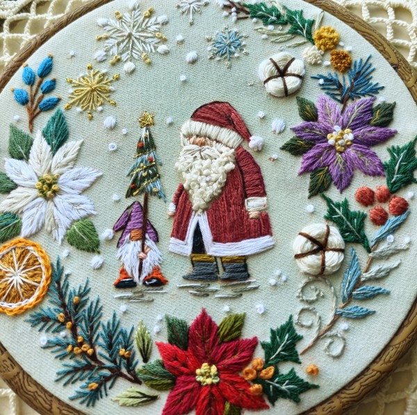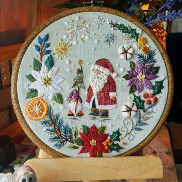 プレゼントを届けるのを手伝ってと、ノームさんにお願いしてるサンタ…のイメージです。