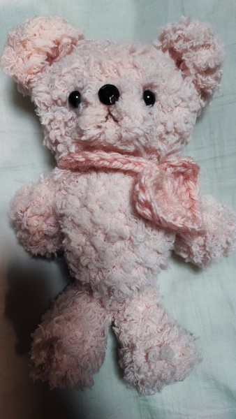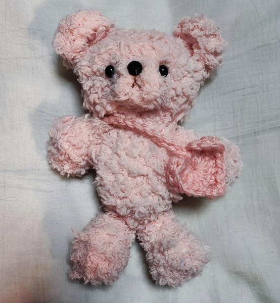 在庫の糸のピンクと白を2本取りで今までとは色々編み方を変えながら編んでみました。