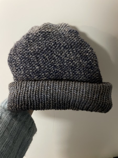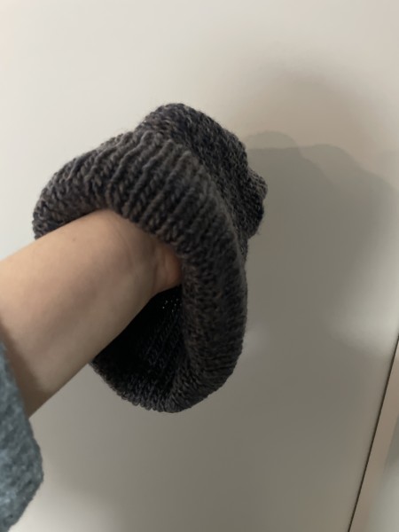 80段編んだあとは端っこを絞って糸処理して完成!あったかいです。
