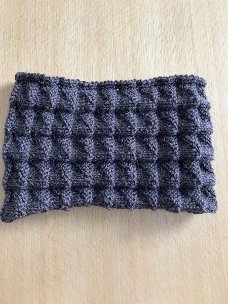 ベルンド・ケストラーさんの「表目と裏目だけで編むニット」に掲載されている三角模様でネックウォーマーを編みました。