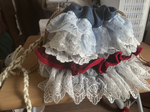 ユザワヤのInstagramであった、フリル巾着バックです。
