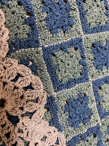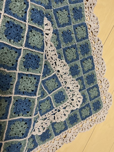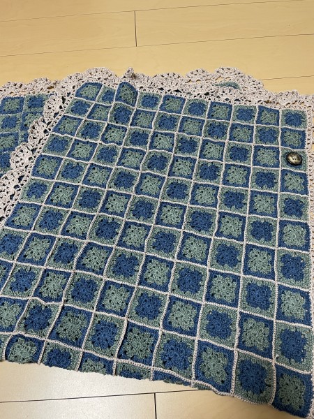 ストールを作ってみました。両手が使える様にボタンもつけました。