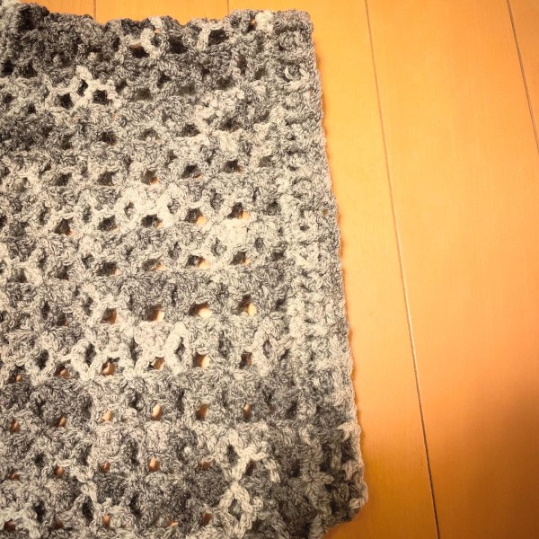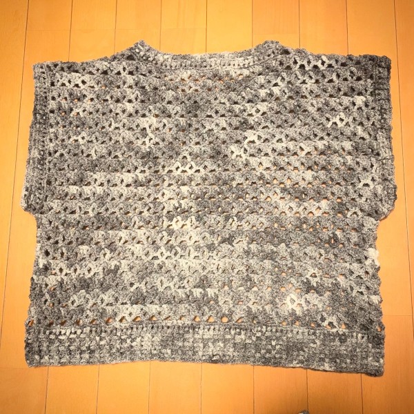 前見頃と後ろ見頃のゲージが合わず、一度解く場面もありながら、なんとか完成させました。