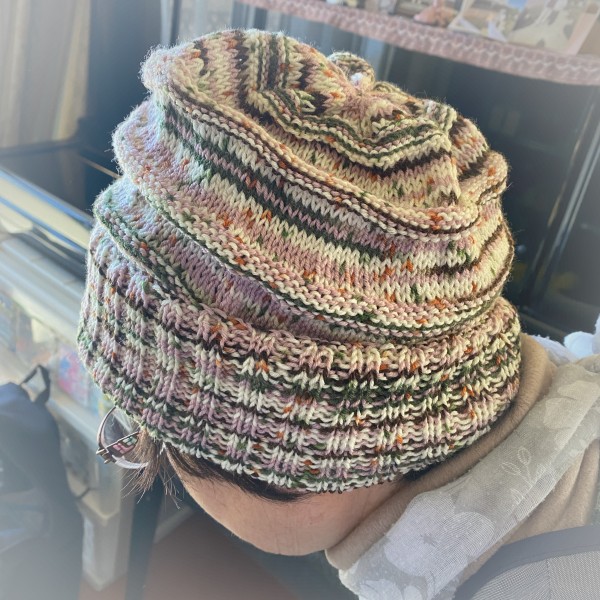 ショートスパンの段染め糸だったので、柄を活かしてシンプル可愛い帽子を目指しました。