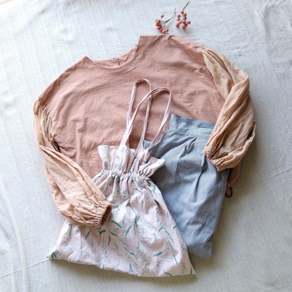 ●ふんわりギャザー袖のブラウス(ピンクベージュ)●