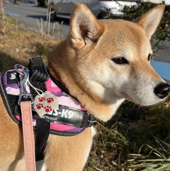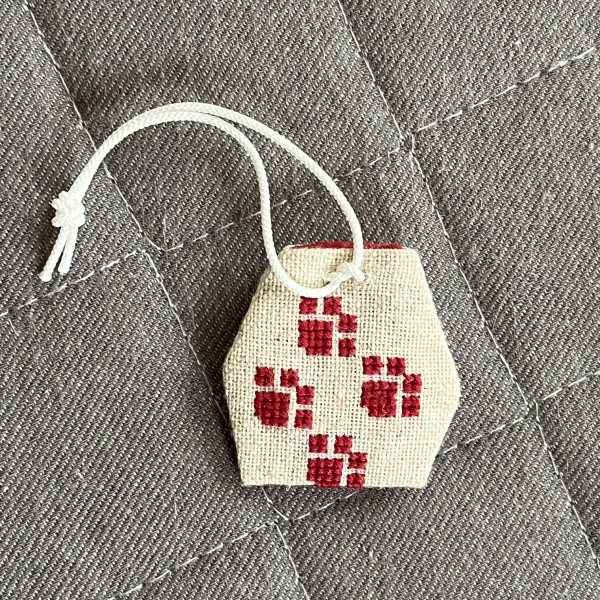 愛犬Momoの『M』を刺繍してお守り風の犬チャーム作ってみました。U^ェ^U