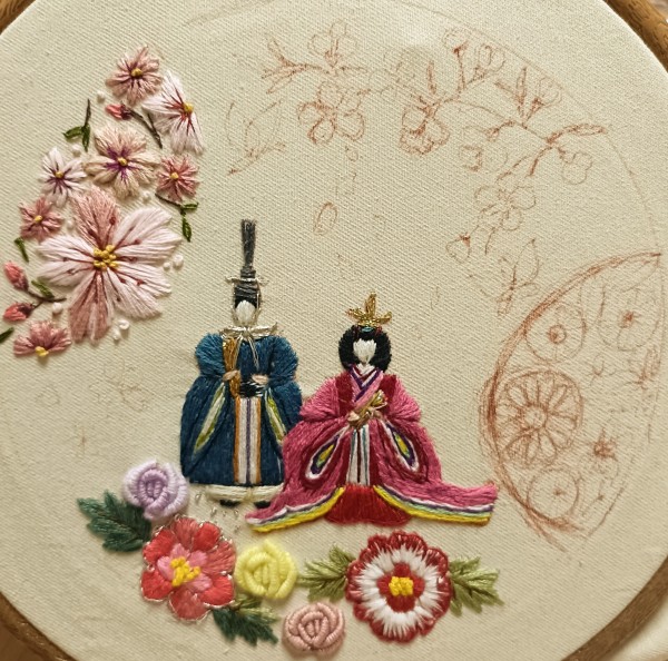 デフォルメされた大きな桜が特に印象的でお雛様を引き立てていますね 細かいところまでとても丁寧で綺麗です すごいですね