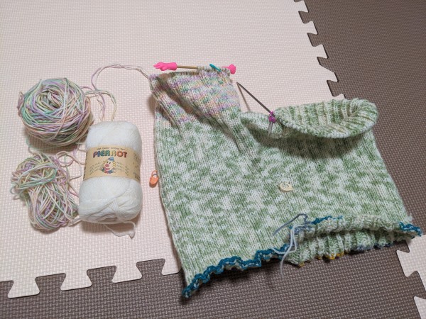 片足分完成したところで風邪を引き、数日間ほぼ進まず……果たして今シーズンの寒いうちに編み上がるのか。