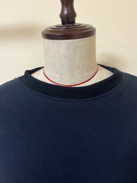 トレーナー1号。首のリブが怖くてなかなかしようと思わなかったが、フードよりずっと楽でした笑 首のリブは少し立ち気味になってしまったので、次はもう少し短くしよう