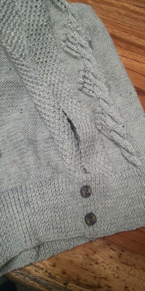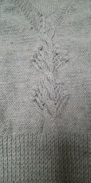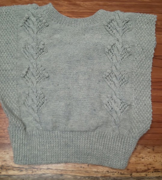Vネックのベストで、脇はオープンでボタンで止めるデザインです。
