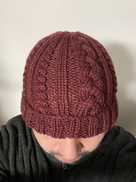 寒い日に出かけようとして、帽子を探したら見当たらない… ということで、「無いものは作れば良い」発動、編み始めました。