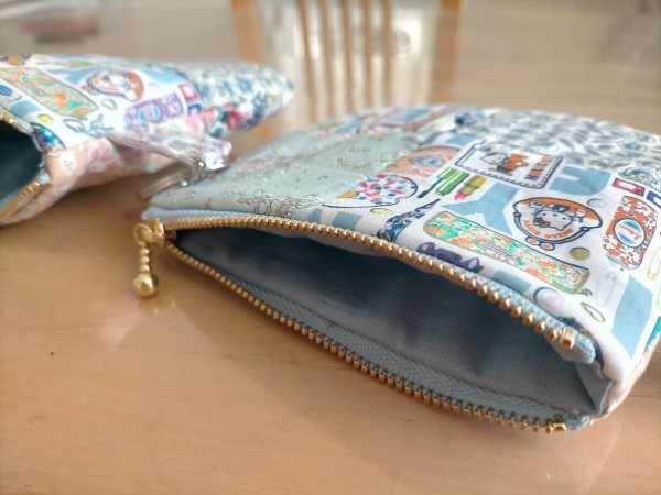 リバティ生地をパッチワークしてキルト生地に仕立てて作ったファスナーポーチです。