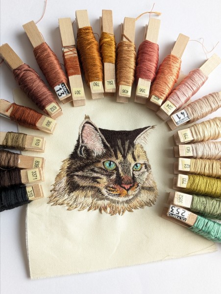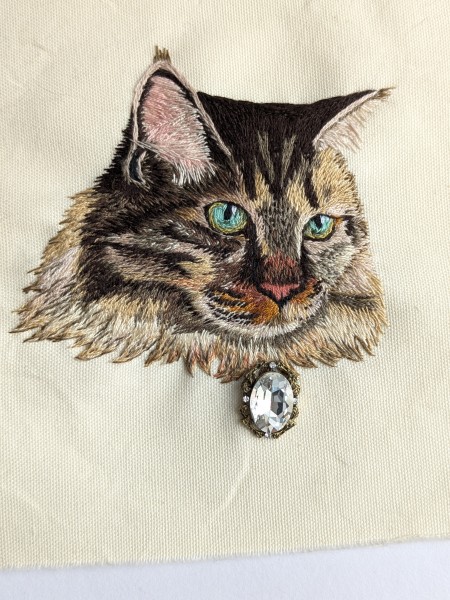 真ん中にネコ様で、グルーりと囲ってブローチの額縁風とかもどうかな?