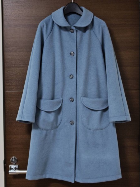 | ソーイングスクールのカリキュラムで、ラグランコートを縫いました。(ロックミシンと直線ミシンを使用) 丸襟や丸ポケット、ボタンホールが少し難しかったですが、デザインが可愛らしく、飾りベルトも素敵なので、完成して嬉しかったです。 |
