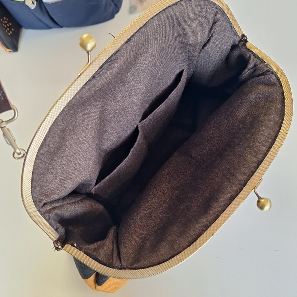 クラフトイベントで購入した30cm幅のがま口で作りました。内側にアレンジでポケットを2つ。