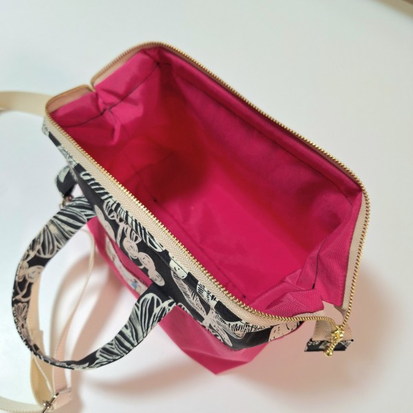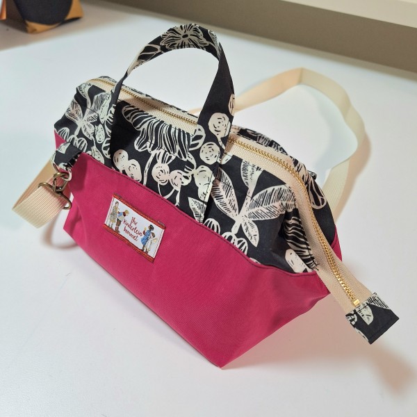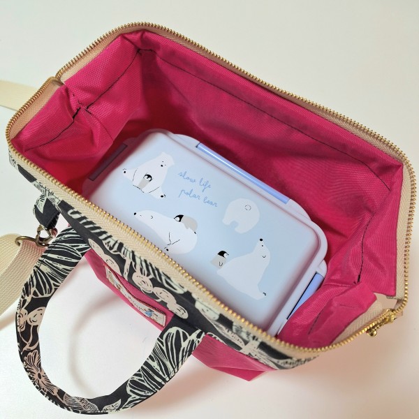 | ワイヤー口金を使用してランチバッグを作りました。お弁当箱がぴったり収まって安心した〜(^^) 今回は初めての試みとして、エンドニッパーを使い50cmのファスナーを37cmに縮めて使用してみました。思ったよりも簡単にファスナーをカットできたので嬉しい! |