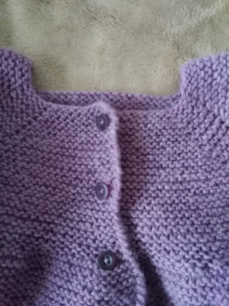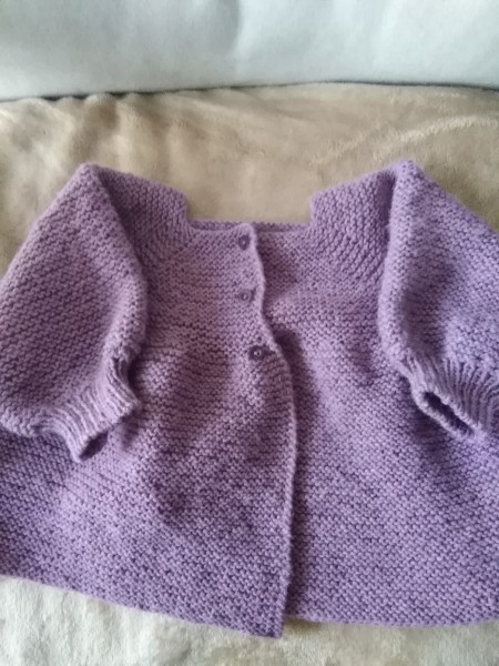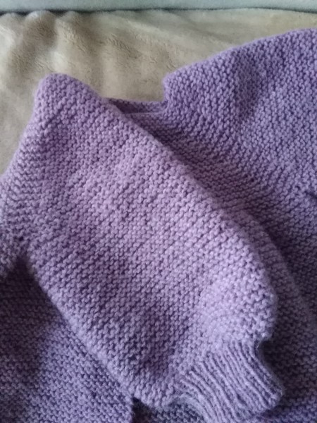 四角いヨーク編みベストの袖を延長して、ポワン袖のカーディガンにしました