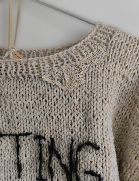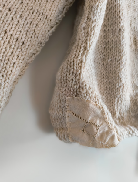 極太糸でザクザクとファスト編み。粗が目立つところはコーヒー染めでアンティーク風にしたレースでなかったことに!笑