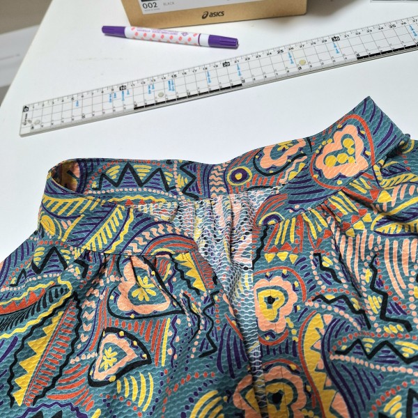 前身頃の中心を縫い合わせるので、頑張って柄合わせしてみました。