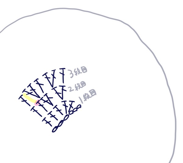 | 手編みのハンカチ ニッタオル101 p.90 ハート型 3段目について質問です。 添付画像は編み図を一部を手書きしたものです。3段目では、画像ピンクに塗っている頭をとばして編むのでしょうか?編み図では左右ともこの部分が空くので黄色で塗った部分に穴があくようで正しいのか気になっています。 直前の増し目をせず1目ずつ編むのでしょうか?もしくは書いていないけれど黄色い部分には長編み1回編むのでしょうか? どなたかお手伝いいただければ幸いです。よろしくお願いいたします。 |