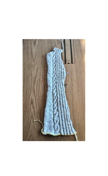 サイズ確認のため、一旦伏せ止めをしましたので、サイズ確認後に一目ゴム編み止めをしたいと思います。