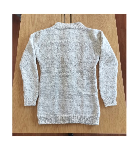 | ベビーアルパカの飼育員さんからのオーダー作品です。 初めて毛刈りをした時の毛を糸にしてロングカーディガンを編みました。 ご本人からの希望で、なわ編みを入れただけのシンプルなデザインとなっています。 アルパカの毛は、毛足が長いため、紡ぐ時に工夫が必要でとても勉強になりました。 |