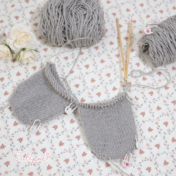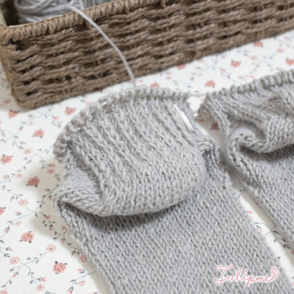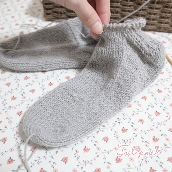 両足を一緒に編む方法で編んでいます♪