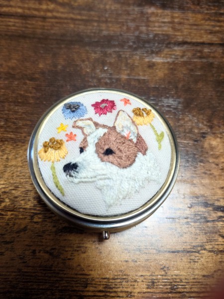 ピルケースと刺繍を貼り付けた板は購入品です。