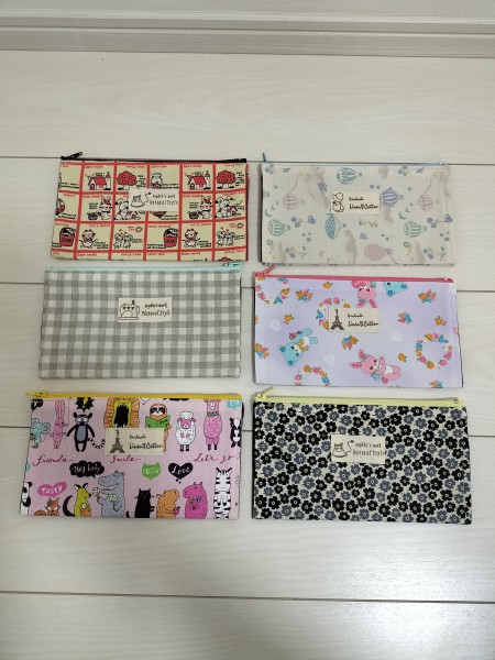 ペタンコポーチを作りました。中に仕切りがあるので、ちょっとしたお財布代わりや通帳入れ等に使えそうです。接着芯をつけたら端が硬くて縫いにくかったですが、その分しっかりしています。