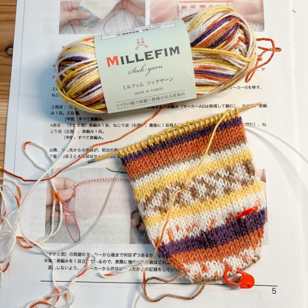 初めての靴下編み。あみよびコケシ先生のレシピです。棒針編みに苦手意識がありましたが、すごく分かりやすい丁寧な動画でなんとか編み上げることができました!