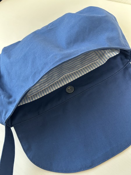 | 以前作ったふくろう柄のセットアップに、青いポシェットを合わせたいな、と思い制作しました。口はマグネットホックで止めた上から、タブが被さるようにしてみました。後ろ側にファスナーポケット。紐は共布で作りたくて、中央ではぎました。やや長めだったかもしれません。 また違う色で、パターンを改良しつつ作りたいです。 | |